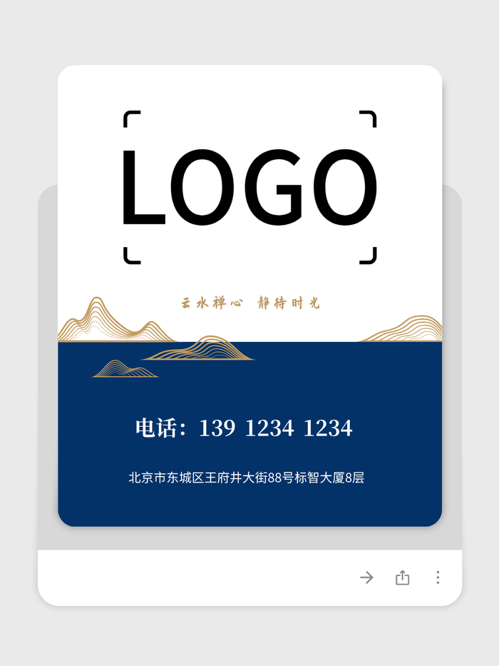 AIPPT提供精美原创电子名片模板,点击“使用模板”可以在线制作电子名片,文字、图片、背景、布局都可以随意修改定制,5分钟在线完成蓝白色中式祥云商务电子名片PPT模板。